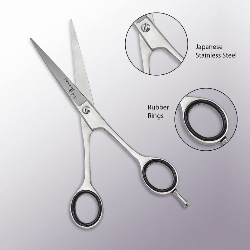 - The sharp barber scissors are made with Japanese stainless steel with mate polished texture which is rust free and long-lasting