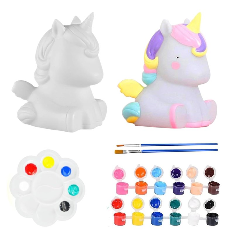 - PAINT YOUR OWN UNICORN LAMP KIT:The DIY Unicorn Crafts Night Light set includes Unicorn Lamp(4.7x3.2x3.5inch), 12 Paint Pots, 2 brushes,1 palette. Perfect for kids ages 3-14 to create the most beautiful unicorn lamp that reflects their own imagination.