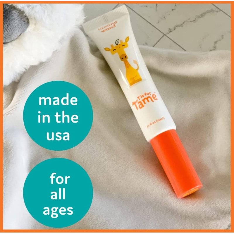 SLEEK HAIR ANYWHERE: T is for Tame has created the first hair finishing stick that is made in the USA. Now you can instantly create a sleek, flake-free, gentle hold with our natural hair taming wand. Tame at home or on-the-go with the compact tube with wand for easy, even application.