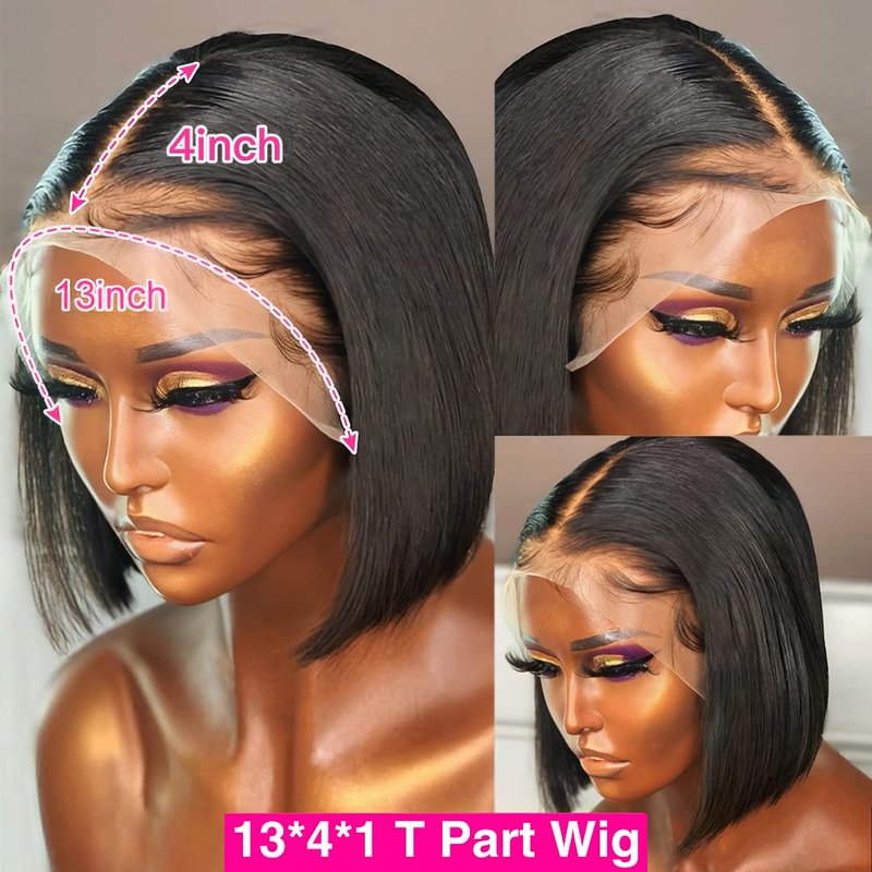 - Lace Front Wigs Human Hair Bob Wig Type: 13”X4”X1” T part Lace Straight Bob Wigs(This wig can only be middle part), Special Parting Can Reduce Shedding. Transparent Swiss Lace Can be Invisible and Natural Looking When Wearing. Pre Plucked Hairline with Baby Hair is very Friendly to Beginners