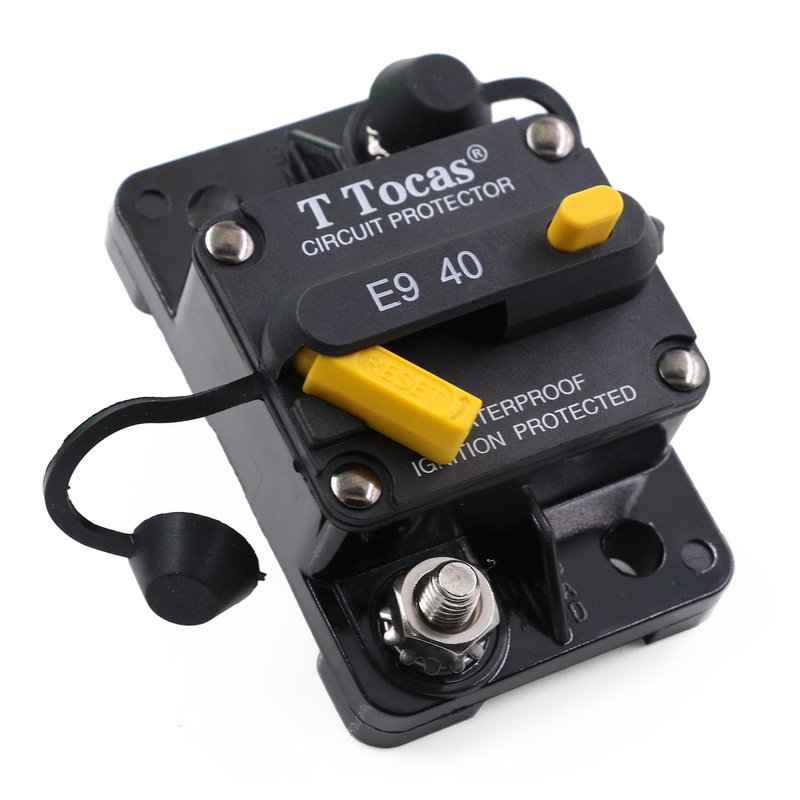 - Hi-Amp 40A Circuit Breaker, Red or Yellow (Random Color) manual reset button
