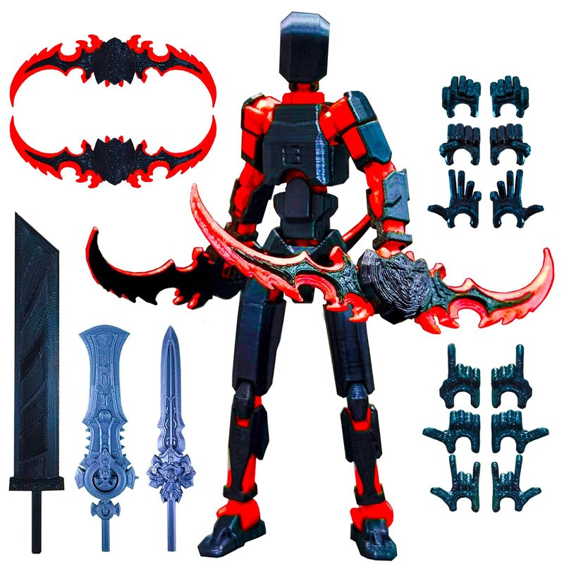 T13 (Assembly Completed) 3D Printed Action Figure,Dummy 13 Robot Action Figure, T13 Collectible Action Figure Articulated, for Collectors Desktop Decorations, muñeco de acción (Black Red)