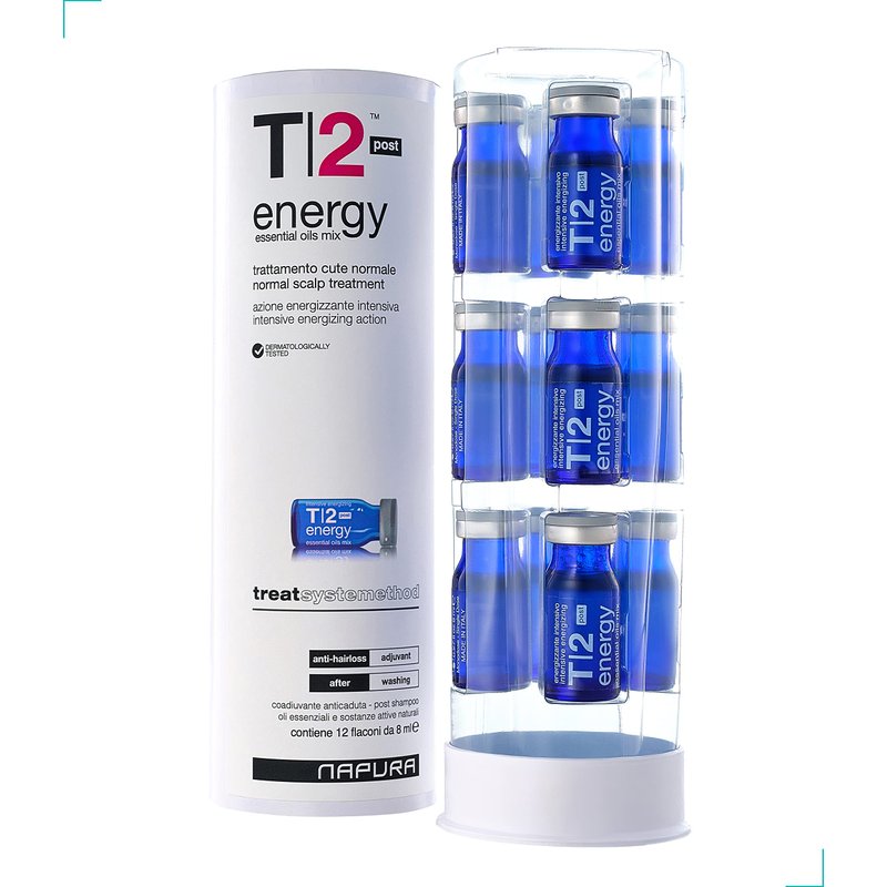 Ideal for an intensive adjuvant treatment in the prevention of hair loss and in cases of temporary hair loss, T2 Energy Post vials have a strengthening and toning action of the hair bulb, acting directly on the root thanks to a specific synergy of essential oils and natural active substances.