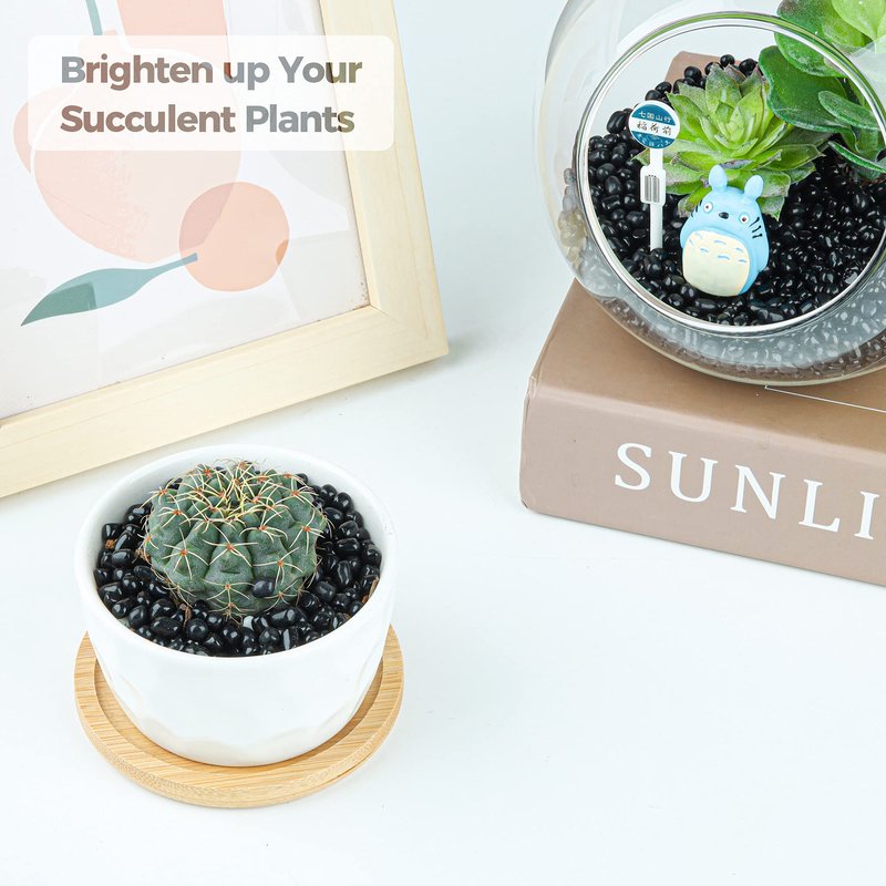 - Pebbles for Indoor Plants - With these top dressing planter decor rocks, your succulent plants would look more chic and energetic. These black polished pebbles can also effectively buffer redundant water to prevent the loss of nutrients and soil which keep the potted plants grow healthily.