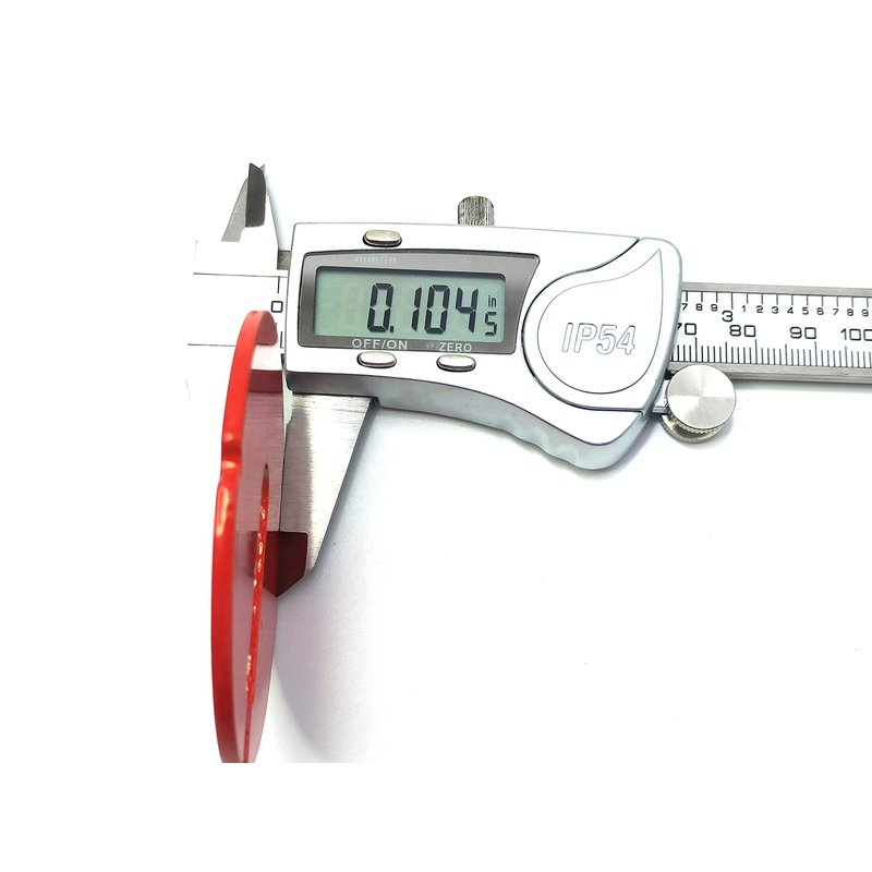 - 2&1/2" X .100 thick Please measure your saws recess to ensure proper fit They fit Delta, Rockwell, some Jet, Ridgid, Grizzly, and other imports.