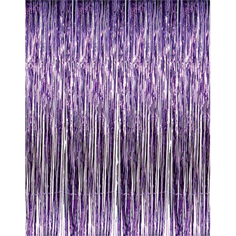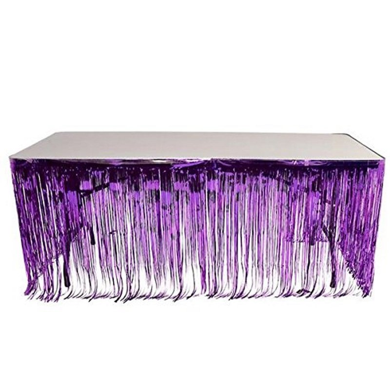 Brighten up the party with this purple, metallic table skirt! The table skirt is 1-ply and measures 14 feet wide x 29 inches long. It can be used on any shaped table.