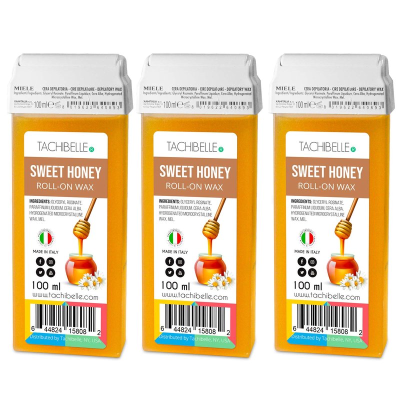 TACHIBELLE ROLL-ON Wax, Depilatory Wax Roller Refill for body, legs and arms 3.52 oz Body Hair Removal Wax Cartridge, Made In Italy (Sweet Honey, 3 Count)
