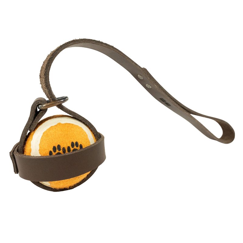 TACO DOG, Dog Ball Toy Holder, Pet Toys, Pet Supplies, Hands-Free Accessory, Full Grain Leather, Handmade, Bourbon Brown