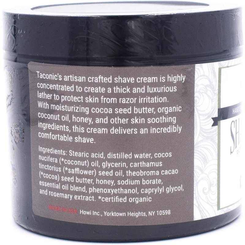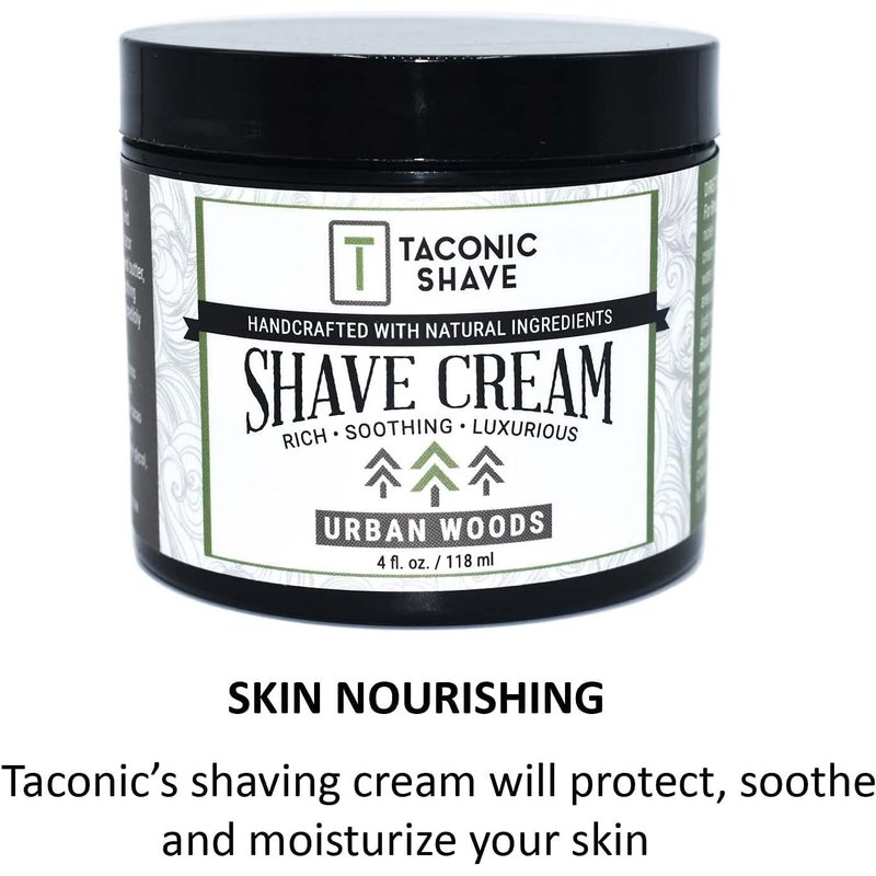 - SKIN NOURISHING: Handcrafted in the USA, this high lather shave cream nourishes and moisturizes your skin. Suitable for brush as well as brushless use, Taconic’s Shave Cream is full of skin-soothing ingredients which result in a refreshed feeling after each shave.