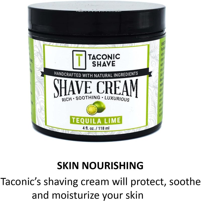 - SKIN NOURISHING: Handcrafted in the USA, this high lather shave cream nourishes and moisturizes your skin. Suitable for brush as well as brushless use, Taconic’s Shave Cream is full of skin-soothing ingredients which result in a refreshed feeling after each shave.