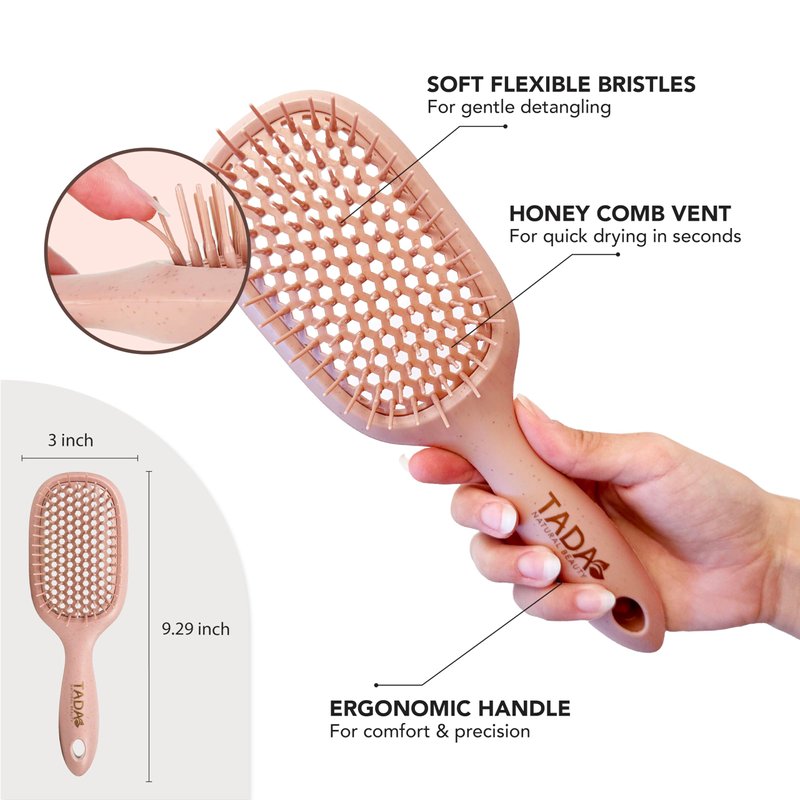 Discover the ultimate solution for all your hair care needs with TADA Natural Beauty Vent Hair Brush Detangler. Perfect for curly, thick, wavy, and thin hair, this detangler brush features ventilation holes for quick drying and easy styling. Crafted from biodegradable wheat straw, it’s an eco-friendly addition to your styling tools & appliances. Available in four vibrant colors, Pink, Beige, Green, and Light Pink this detangling brush effortlessly removes hair knots, even in curly and coily hair. Lightweight at only 1.7 lbs, this hairbrush is travel-friendly and suitable for women, men, and kids. Make detangling a breeze with this versatile and durable detangle brush.