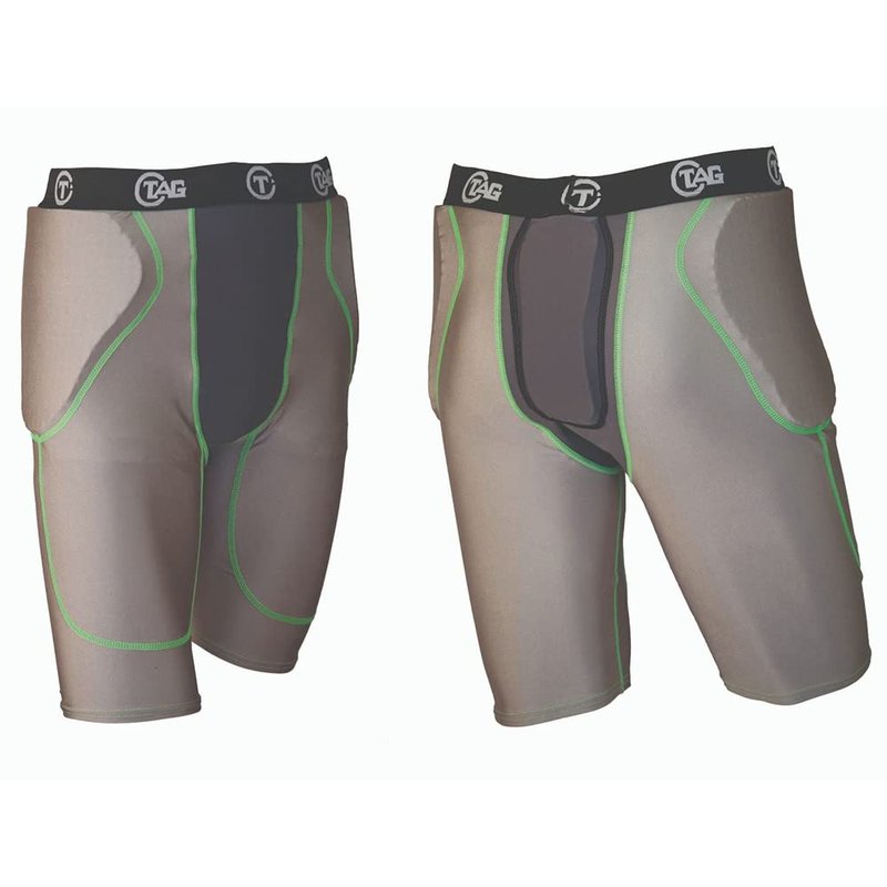 TAG Adult 3-Pad Integrated Girdle - Moisture-Wicking Padded Girdle for Football - Five Pockets - Sewn-in Hip and Tail Pads - Grey with Black Elastic Waistband - Medium