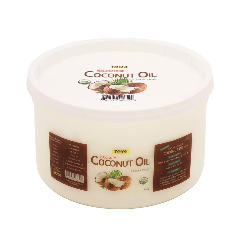 TAHA Coconut Oil, Extra Virgin, All-in-One Nourishment for Hair & Body, Protecting & Moisturizing – Great for Sensitive Skin, Natural Scent, 48 Oz