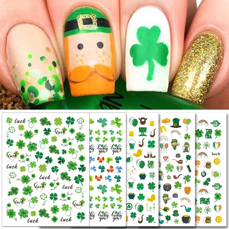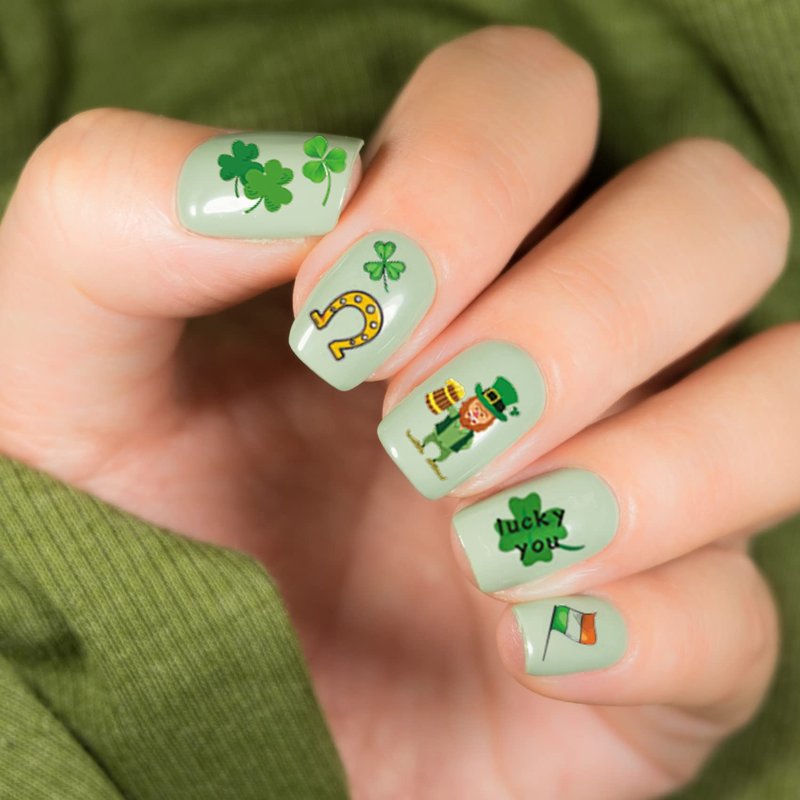 - ☘10 Sets of classic Themes: You will receive 10 sheets of St. Patrick’s Day nail art stickers in different designs. Such as Irish flag, Leprechaun, Shamroc, Horseshoe which make your nails full of festive atmosphere.