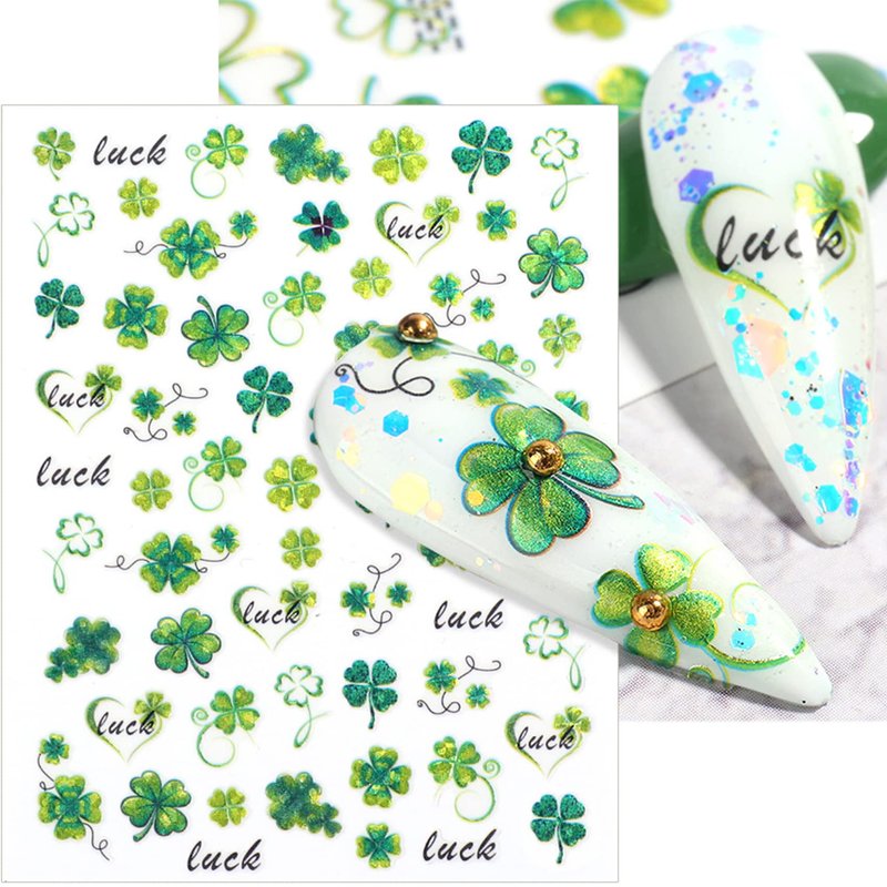 TailaiMei 10 Sheets St. Patrick's Day Nail Art Stickers, Self-Adhesive Shamrock Nail Decals for DIY Nail Decorations, 3D Design for Leprechaun (Cute Style)