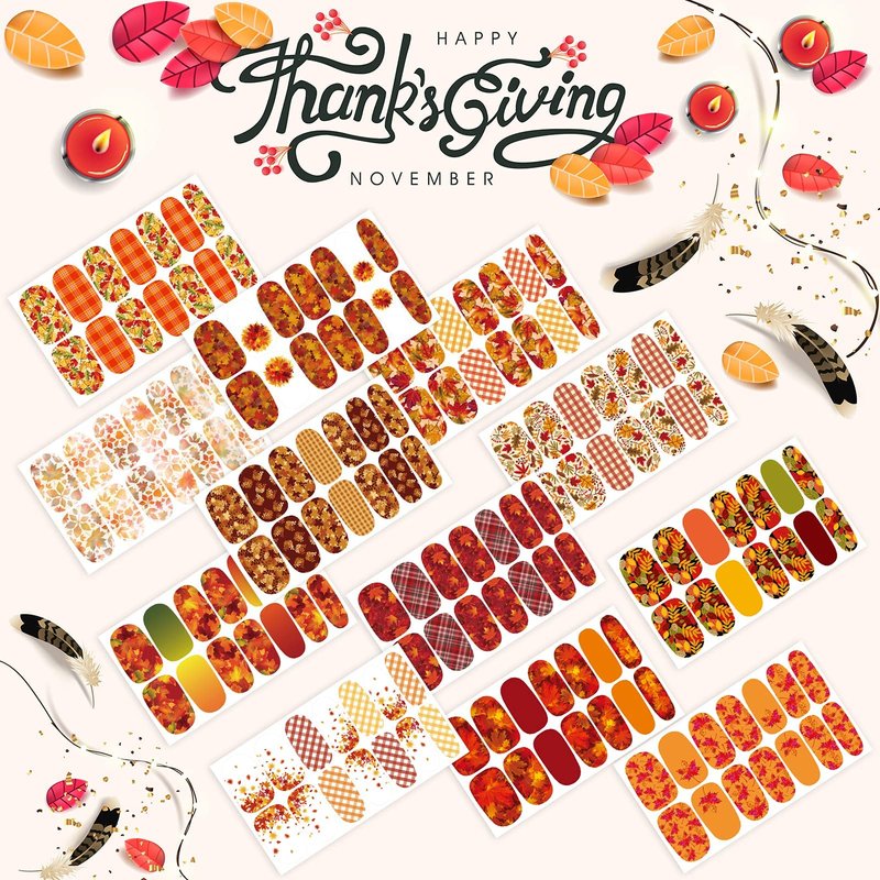 - 12 Sets of fall themes: You will receive 12 sheets of autumn full wraps and 2 pcs nail files in different designs. Autumn colors and grid shapes make your nails full of festive atmosphere, which can meet your everyday matching needs.
