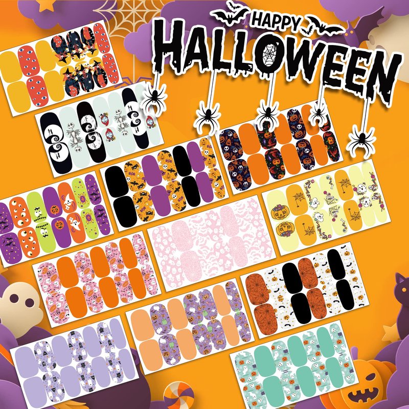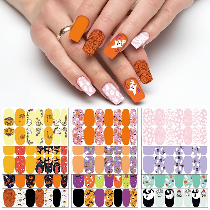 - 🎃12 Sets of Classic Themes: You will receive 12 sheets of Halloween full wraps and 2 pcs nail files in different designs. Such as witch, ghost, spider, pumpkins, bats, and so on. which can meet your everyday matching needs.