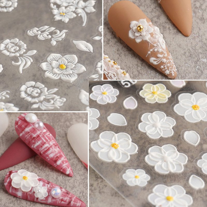 TailaiMei 4 Sheets Flower Nail Art Stickers 5D Exquisite Embossed Nail Decals, Self-Adhesive Carving Design Daisy Rose Nail Decoration for Women DIY