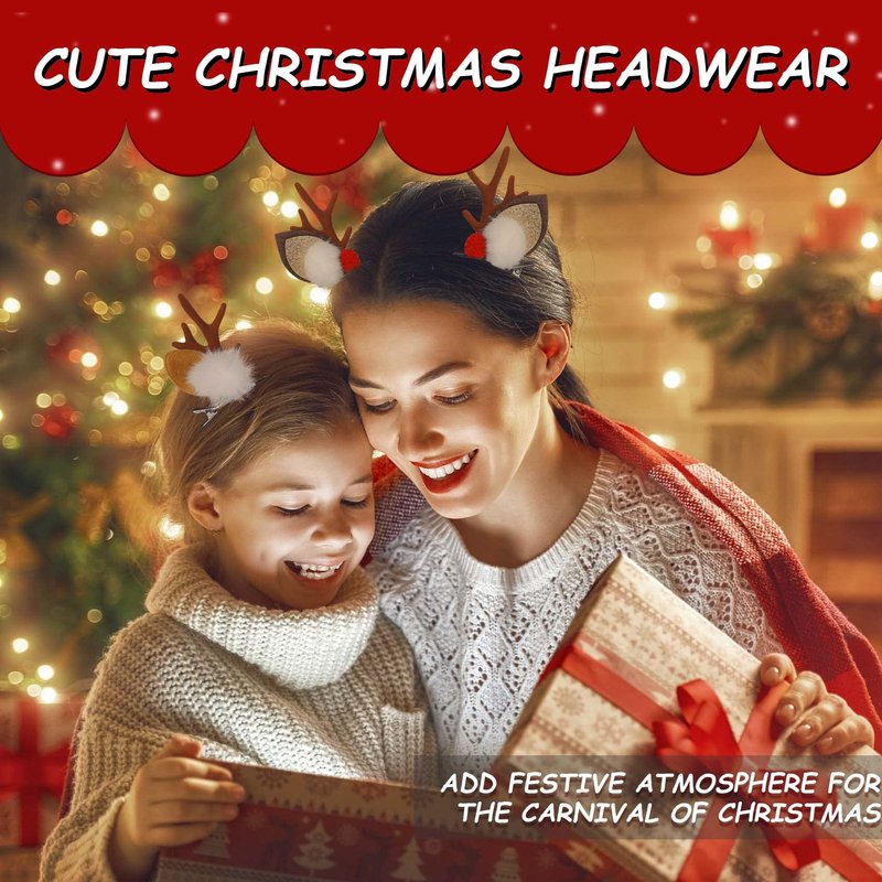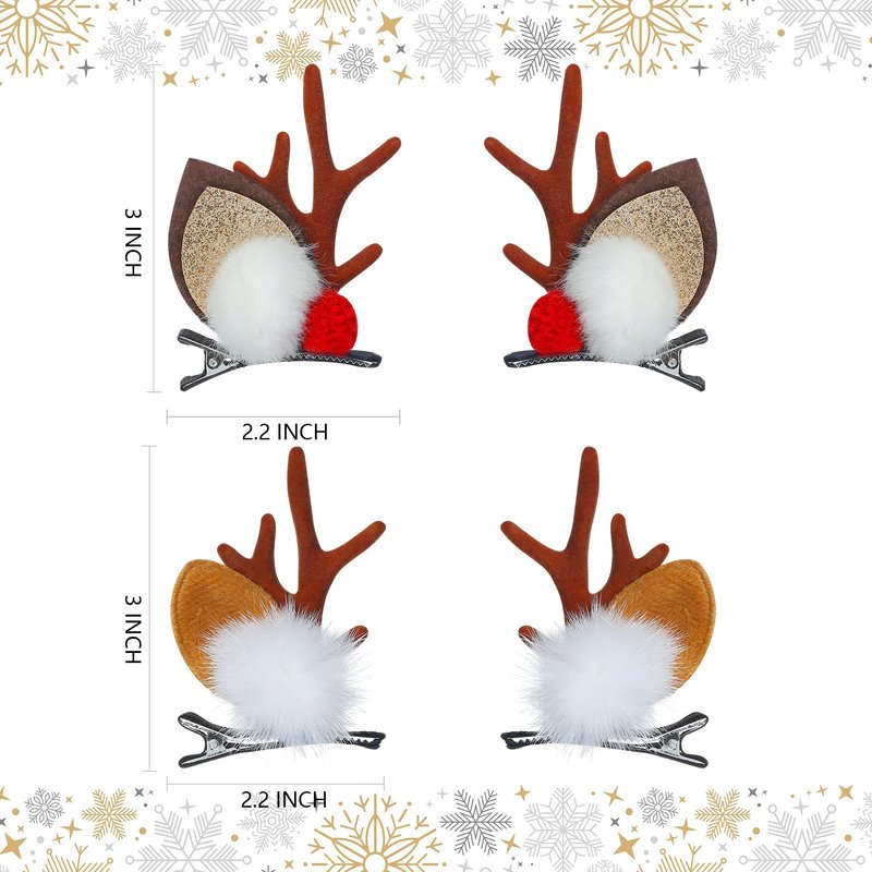 - Exquisite Design - 2 Pairs Special reindeer design, exquisite glitter antler clip with plush ball, easy to create a festive atmosphere, so you in the crowd the most eye-catching.