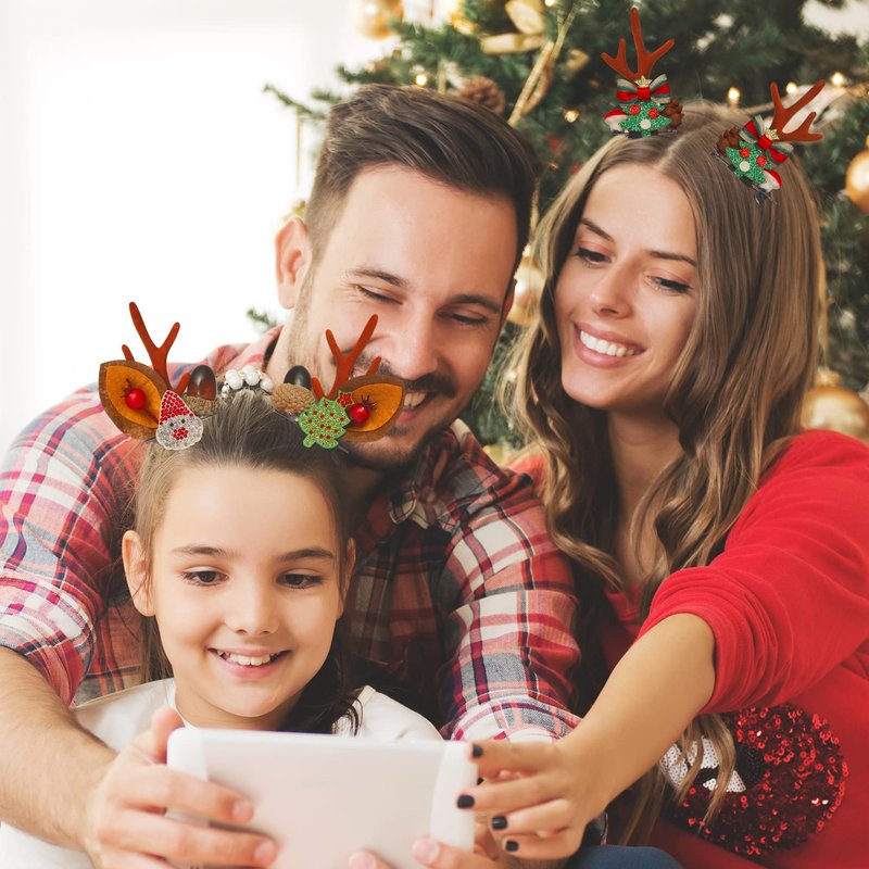 - Exquisite Design - 2 Pairs Special reindeer design, exquisite antler clip with glitter Christmas tree and Santa, easy to create a festive atmosphere, so you in the crowd the most eye-catching.