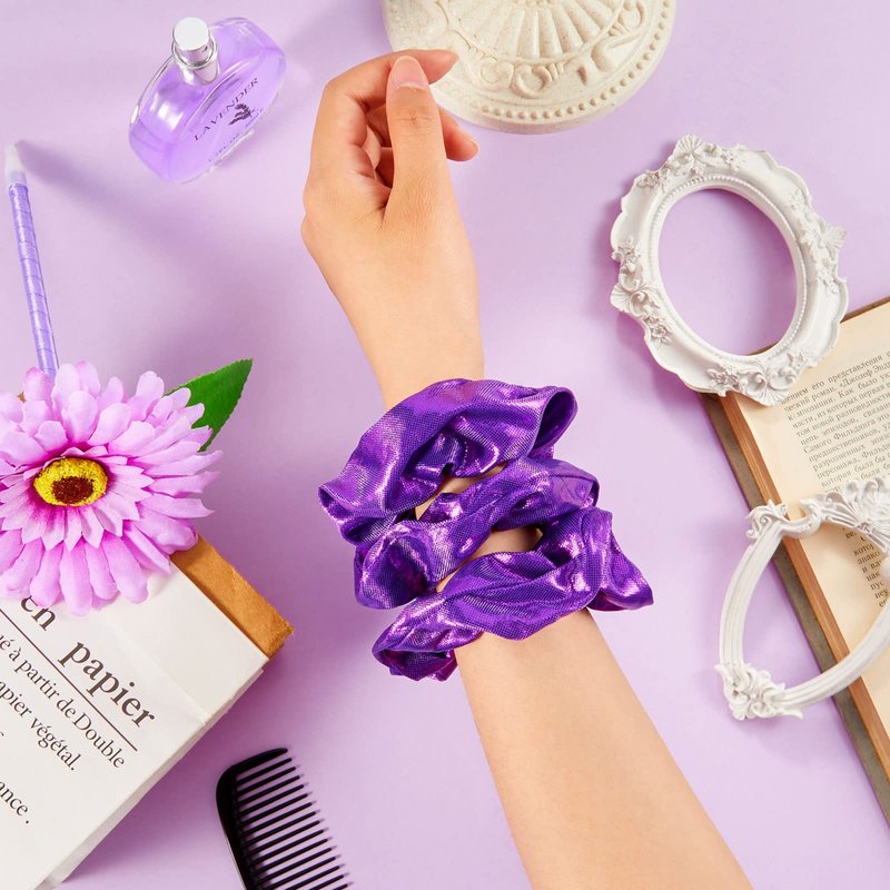 - Enough to Use: you will receive 24 pieces of scrunchies in purple, about 3.9 inches in diameter; The appropriate size and sufficient quantity is suitable for daily hair decorations; Fashionable metallic scrunchies are helpful for your active life