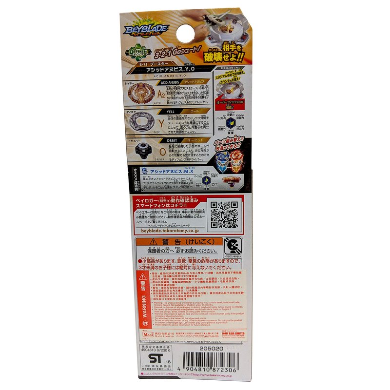 TAKARA TOMY B-71 Takaratomy Beyblade Burst Booster Acid Annubis Y.O Battling Tops Spinning