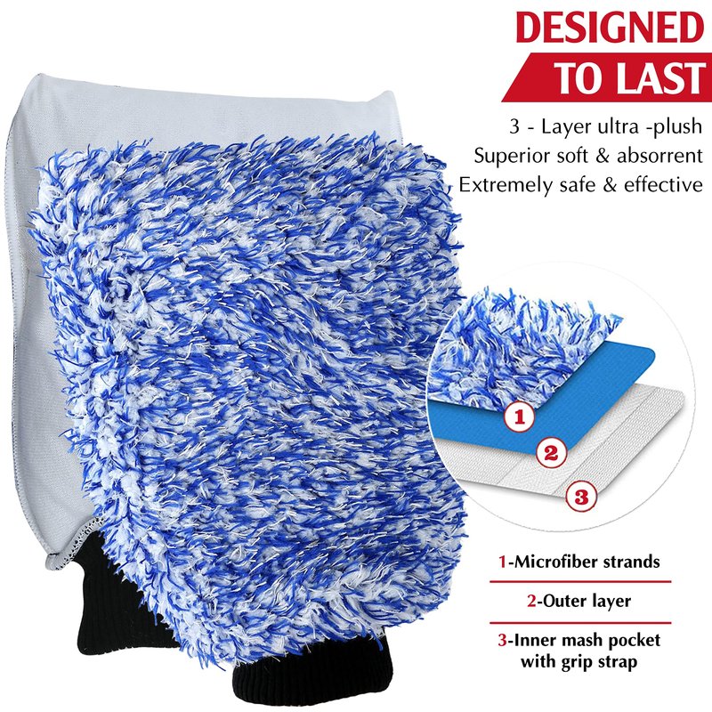 - ✅ 100% Machine Washable: Each wash mitt is meticulously secured by two inside layers – can endure hard cleaning force so when you are done with your wash, simply add the car wash mitt to your regular washing machine and wash it on a gentle cycle; low heat.