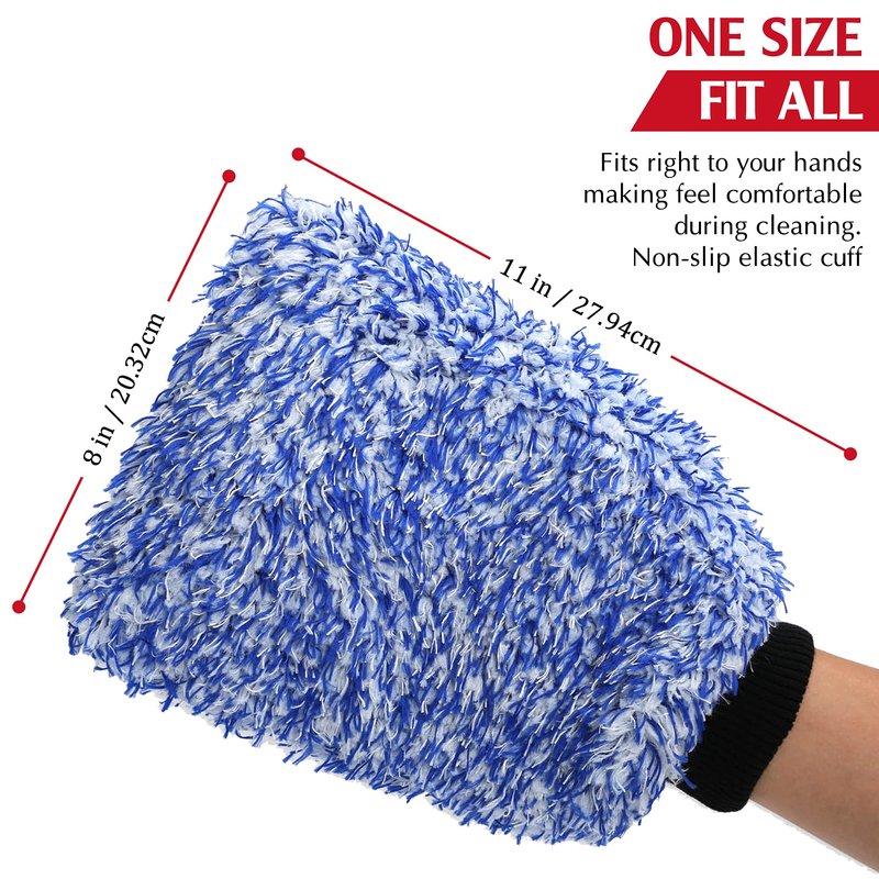 - ✅ Extremely Safe & Effective: Long, Luxurious Fibers that Quickly and Safely Encapsulate All Dirt and Road Grime From Your Vehicle and then Easily Rinse Free for the Next Pass. The mitt comes large L11’’ W8’’ with a thick elastic wrist cuff – for snugly fit to anybody's hand – provides a firm control without worrying that it will be loose while using, fit all hands and provide a wider cleaning area. Used for auto detail, trucks, cars, boats, motorcycles, and more.