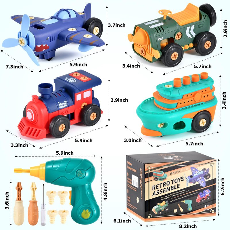 - đ ăTake Apart Toysă: This toddler assembly toy is perfect for boys and girls who love taking things apart. It comes with an electric drill, motor, and extra screws, allowing kids to easily disassemble and rebuild. This retro assembly set includes four fun designs: an airplane, ship, train, and car.