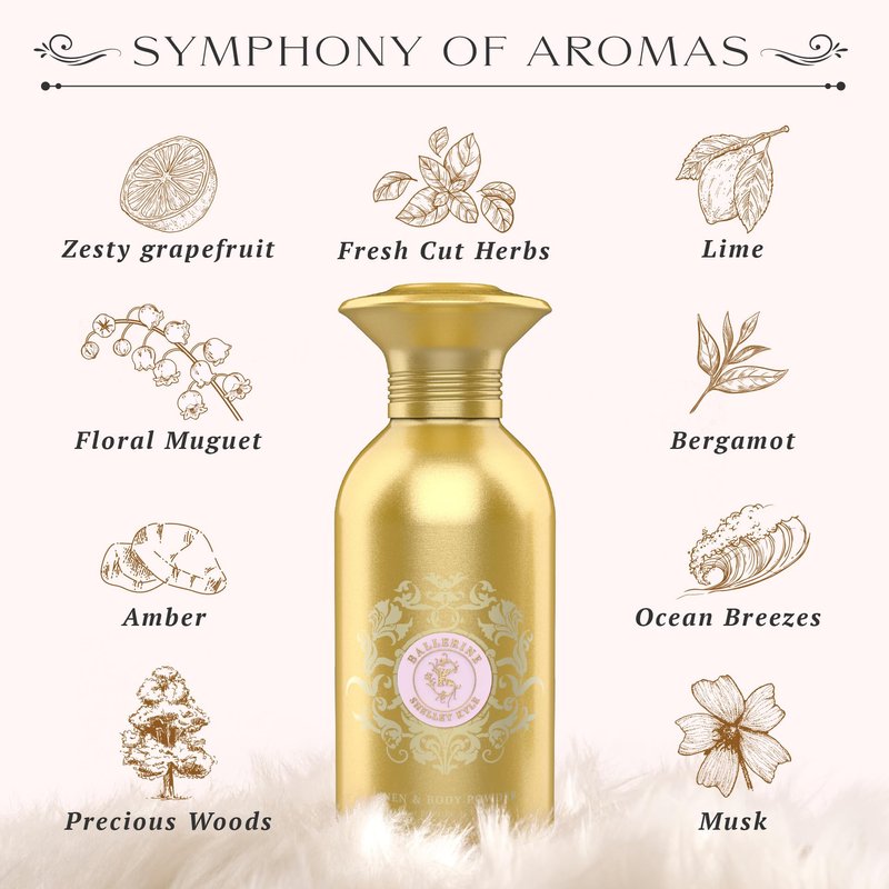 - Our 365g Ballerine Linen & Body Powder Talc-Free is a fanciful and carefree way to dryer, softer, healthier-looking skin. It helps maintain softness while providing a fragrance-filled way to refresh yourself throughout the day. Whether used on your skin or sprinkled on your bed linens in the evening, our Linen and Body Powder delivers a silky step in pampering yourself.