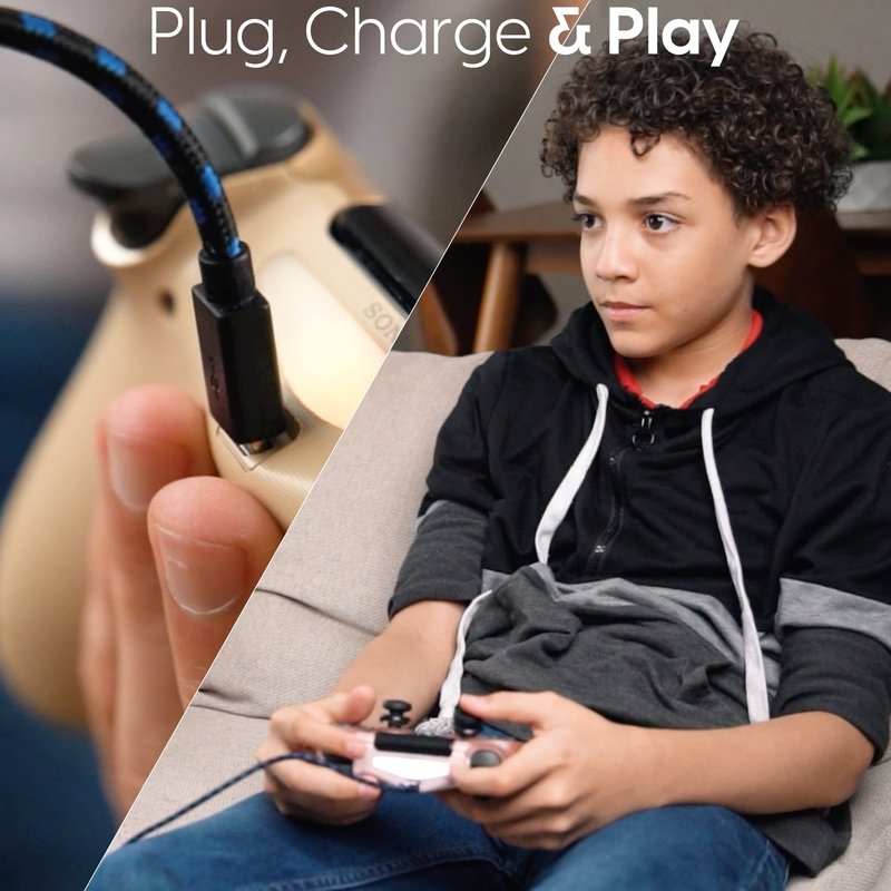 - Hassle-Free Controller Charger - This controller charger wire for PlayStation 4 connects securely into controllers without feeling loose during play. The reinforced design is ideal for repeated use to provide safer and faster charging without tangling.