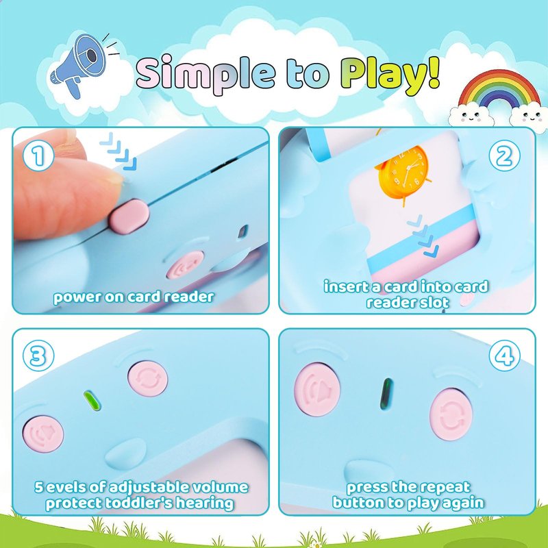 - ✨【Talking Flash Card】 When toddlers choose an animal card inserted into the machine, it will issue American standard pronunciation and then vivid animal sounds. The colorful illustrations and funny sounds can attract children's attention and learning interest. Press the repeat button to repeat the pronunciation and sound effect. This montessori toy keeps kids away from mobile phone and tablets, reduce screen time effectively.