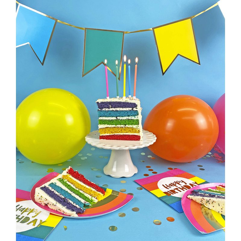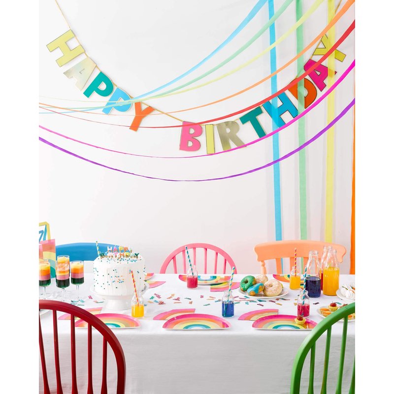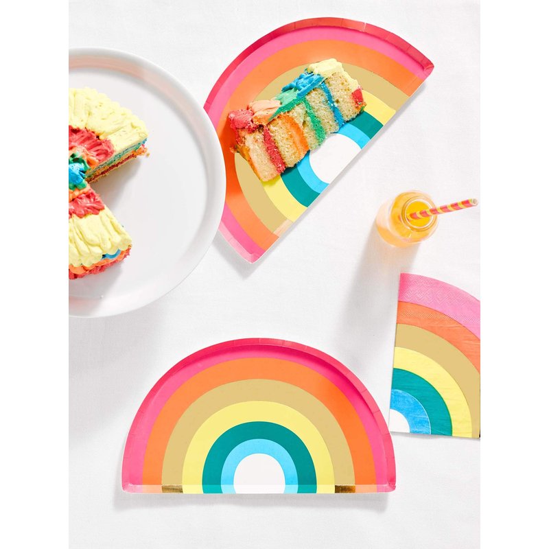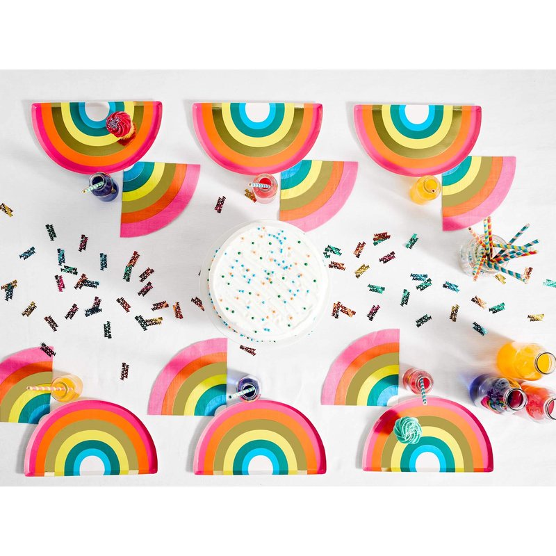 Talking Tables RAIN Happy Birthday Rainbow Shaped Plates Party Decorations, Pack of 12, Width 24cm, 9", Gold Foil and Mixed Colors