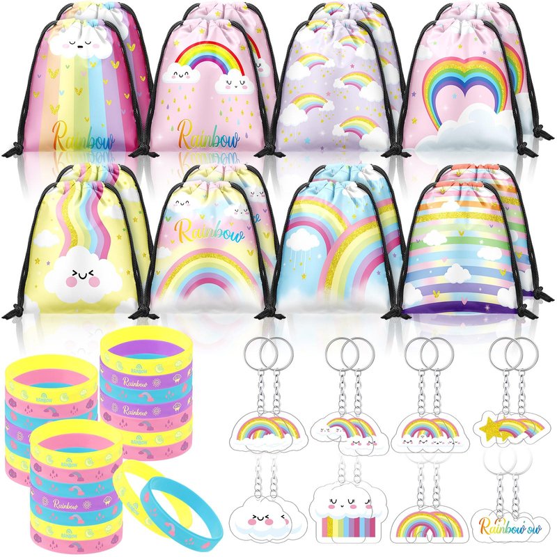 - Conspicuous Design: rainbow party drawstring bags are shaped rainbow and cloud design, bracelet and keychain is colorful and exquisite, can bring you a good visual experience
