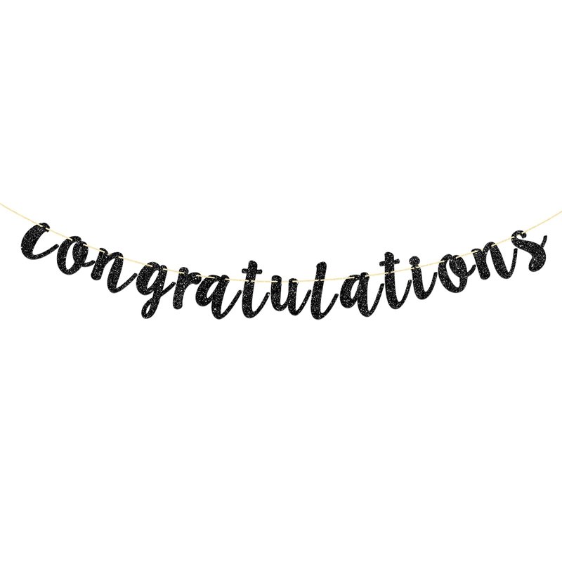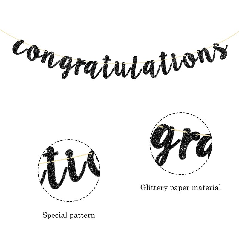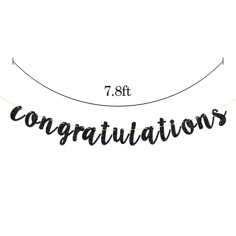 Talorine Black Glitter Congratulations Banner for Wedding, Anniversary, Graduation, Congrats Master Bunting, Retirement Party Decorations Supplies