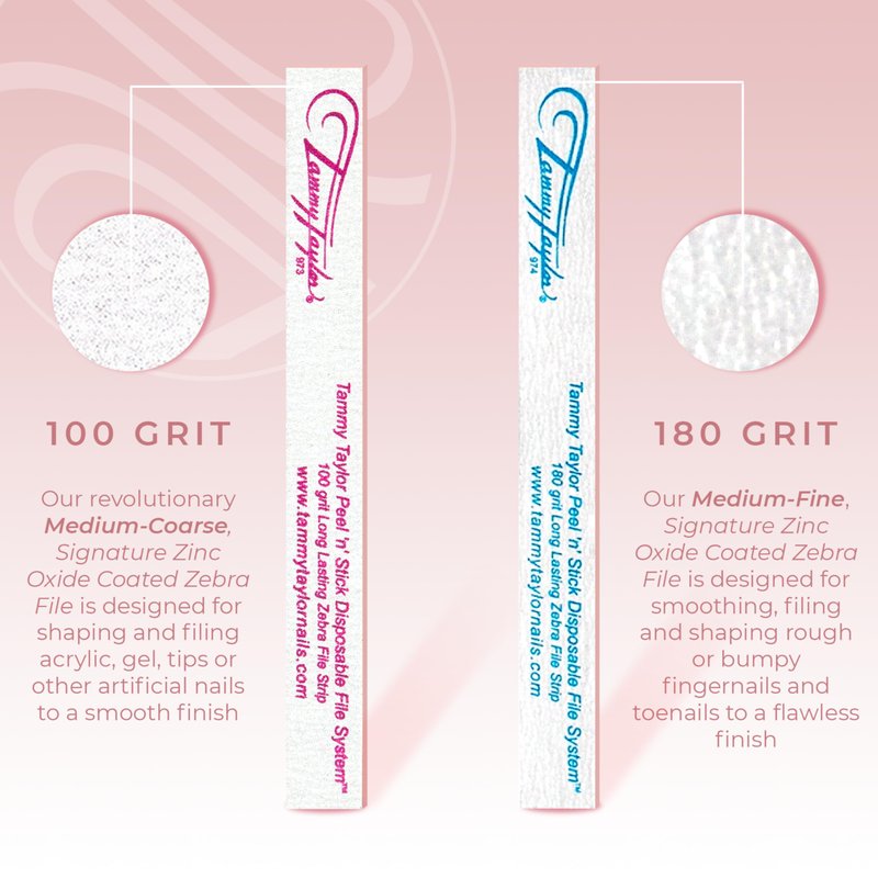 Tammy Taylor 100/180 Grit Nail Files for Acrylic Nails | Peel and Stick Disposable Zebra Coarse Nail File for Shaping Nail Art and Acrylic Nail Powder w/Professional Emery Boards for Nails | 10 Pack