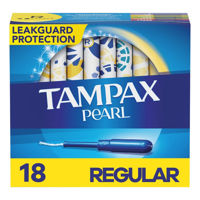 Tampax Pearl Plastic Unscented Tampons, Regular Absorbency, Blue, 18 Count