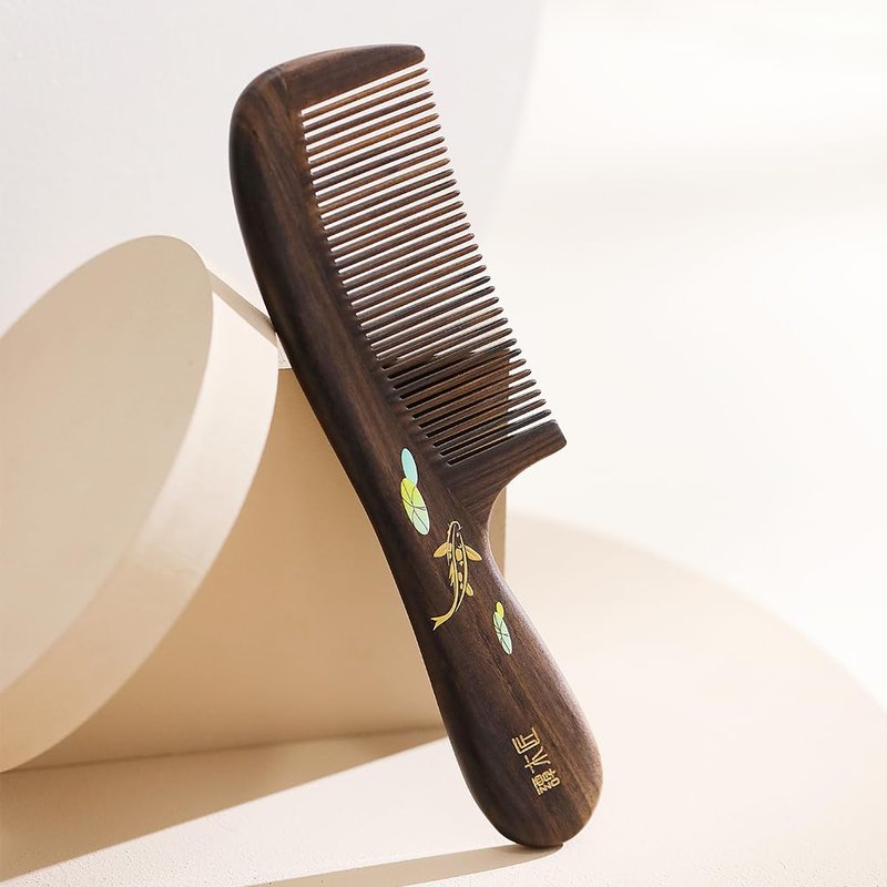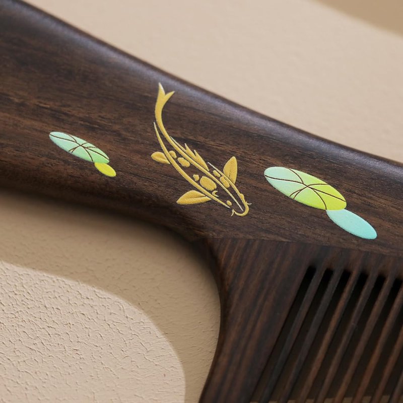 TAN MUJIANG Hair Comb for Women Natural Wood Antistatic Koi Carp 1pc