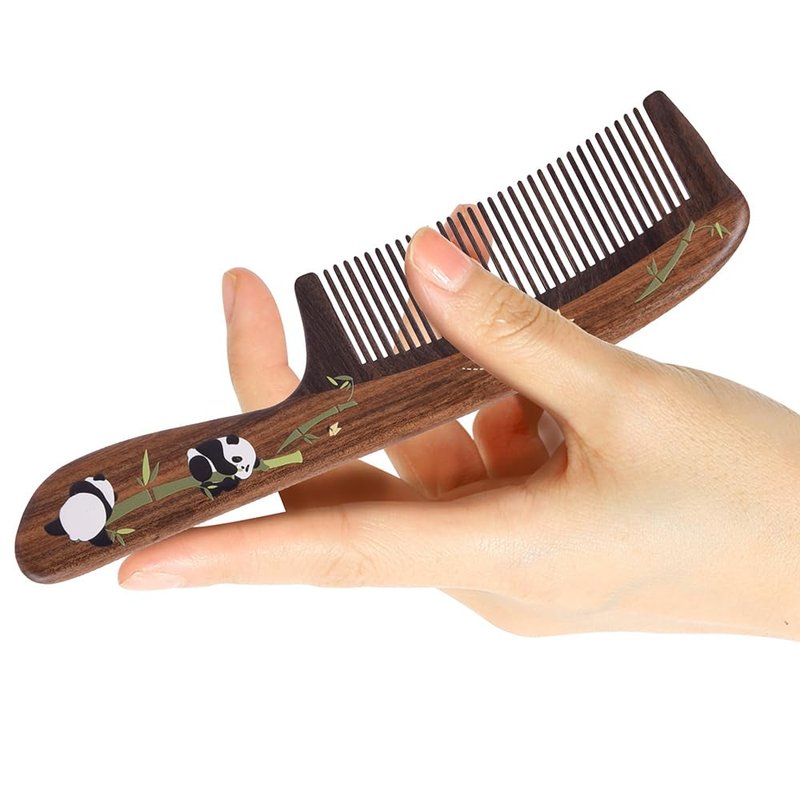 TAN MUJIANG Wood Hair Comb Natural Wood Panda Eats Bamboo 1pc