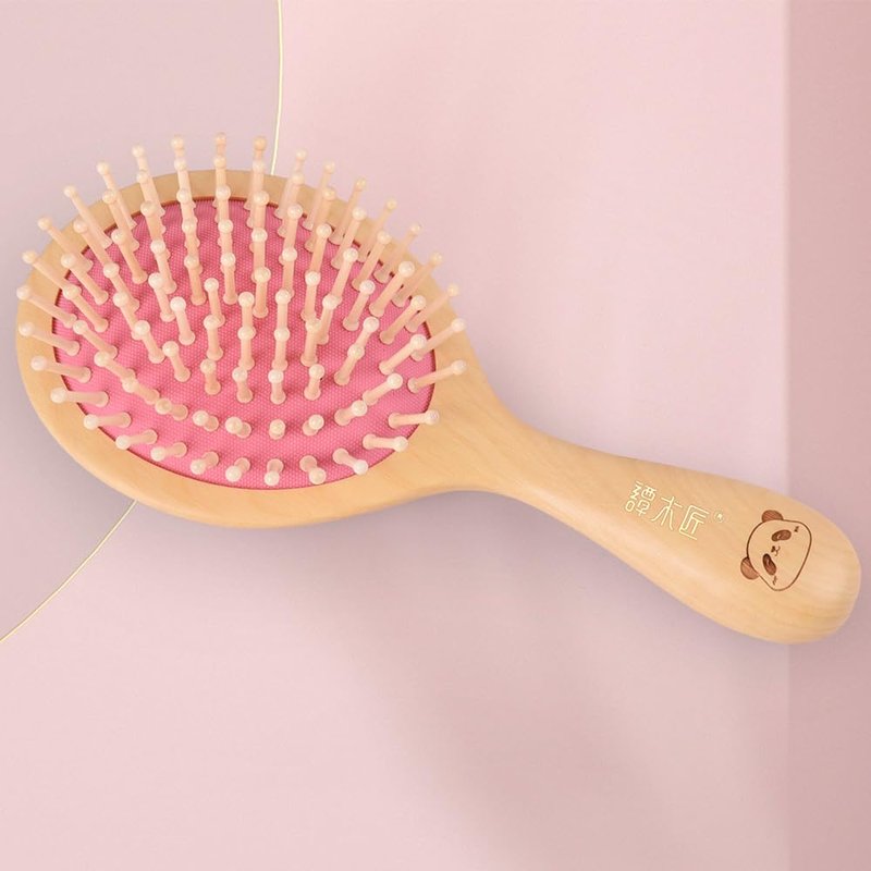 TAN MUJIANG Wooden Hair Brush for Long Hair Panda Pink 1PC