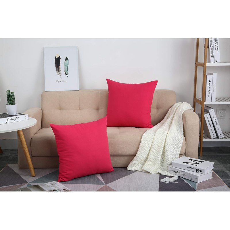 TangDepot Cotton Solid Throw Pillow Covers, 22" x 22" , Watermelon Red, 1 Count (Pack of 1)