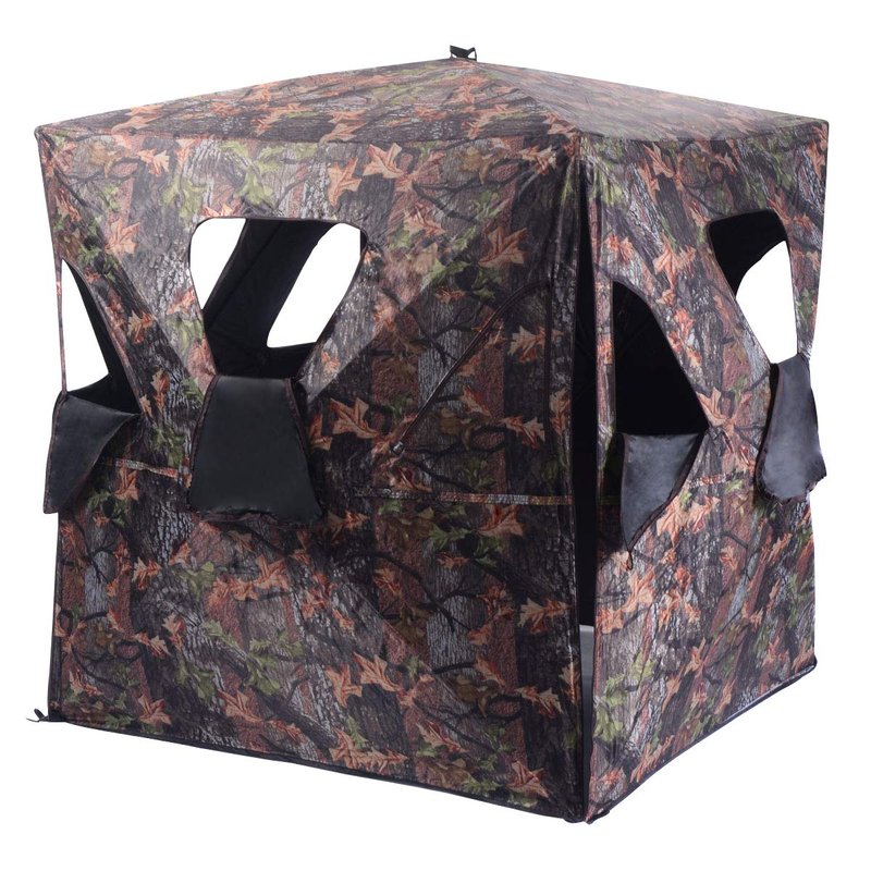 This roomy hunting blind can accommodate 2-3 persons that will perfect for small group hunts or one hunter with extra gear. In most cases, bigger is better. Built with clever hub technology, durable fiberglass poles and high quality, unique fabric, our big blinds remain very portable and easy to put up with their simple pop-up design. The material of the tent is durable, water-resistant oxford with black interior and PU coating that can protect from the water and ultraviolet light. Four sides of the blind feature versatile, zippered windows with camouflaged mesh coverings can be adjusted quietly from inside the blind and 360 degree windows improve your success for hunt. Please trust us, our product will provide you a wonderful travel about hunting.