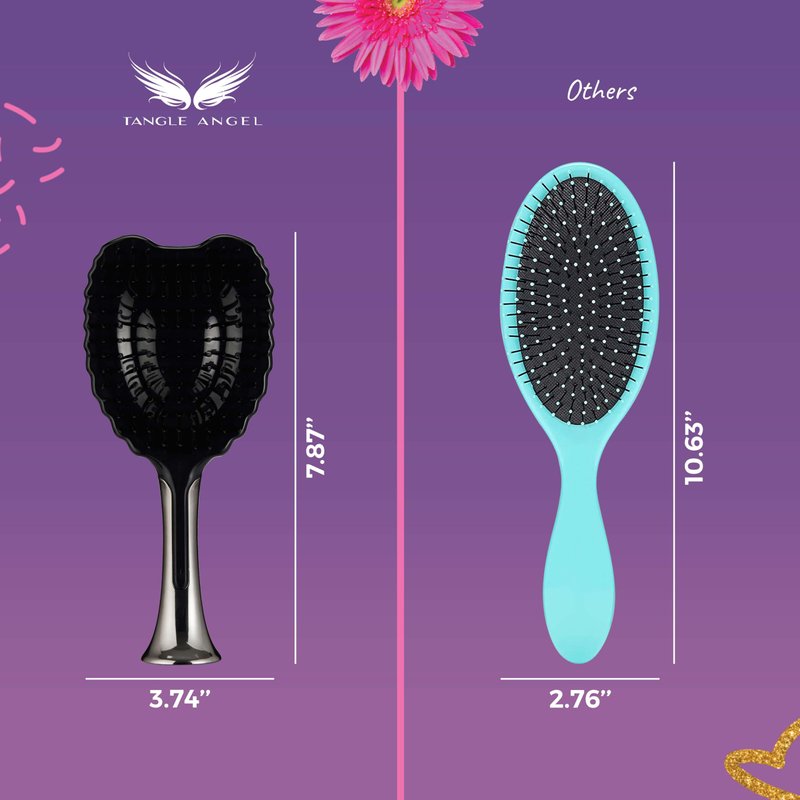- Easy to Hold, a Sight to Behold: Our Tangle Angel professional detangling hair brush for blow drying has an ergonomic handle and iconic angel wings design for greater control. This angel wing hair brush also stands up gorgeously – all thanks to its sturdy base.
