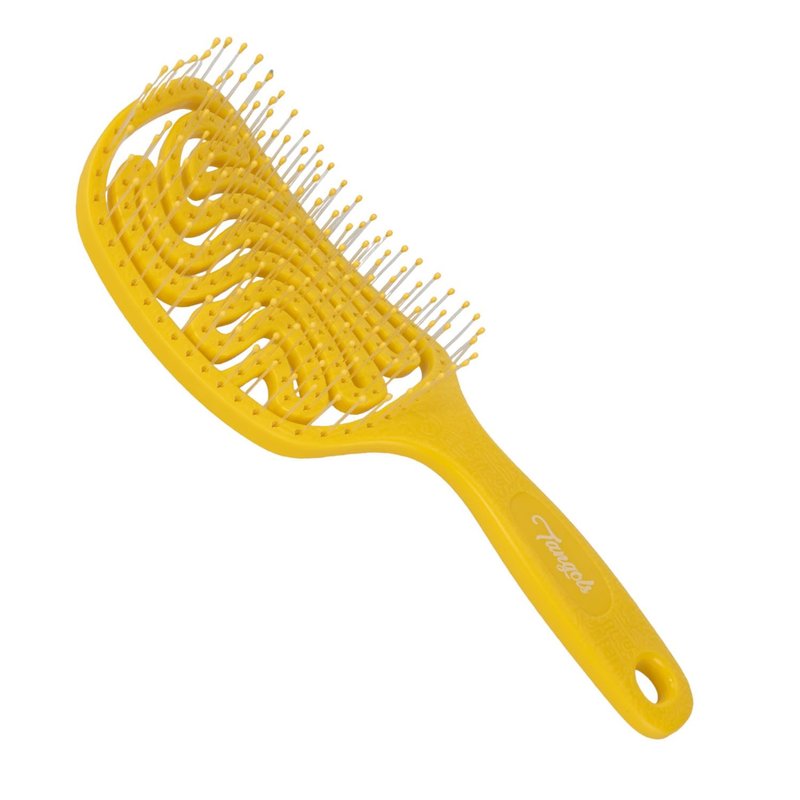 Tangols Gentle Detangler Hair Brush-100% Eco-Friendly Double Curved Straw Hair Brush w/Ultra-Soft Anti Knot Nylon Bristles for Adults,Kids All Hair Types (Yellow)