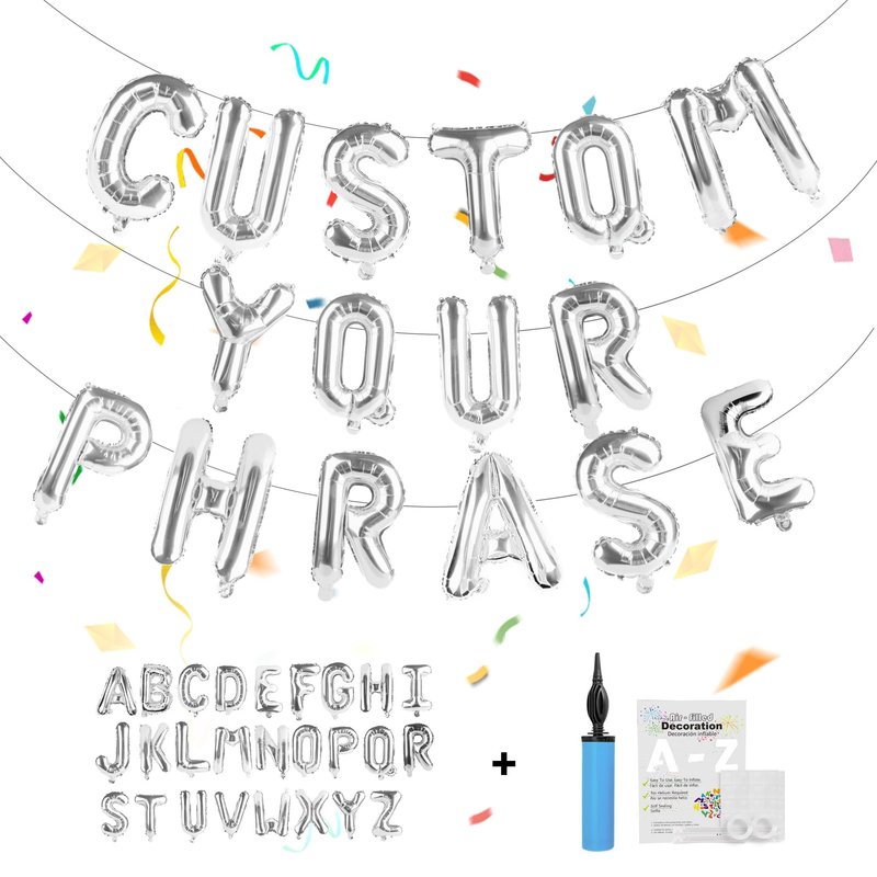 TangTuan 53pcs Silver Letter Balloons, Custom A-Z Set for Personalizing Names & Phrases on Party Supplies Banners - Inflate with Balloon Pump, for Women Men Birthdays/Anniversary/Graduation
