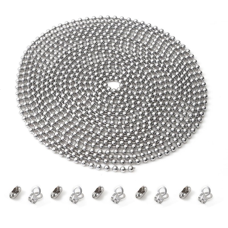 Ceiling Fan Pull Chain, Beaded Pull Chains Extension, Light Chain Pulls Extenders Great Pulling Force Stainless Steel with 10 Matching Connectors 2 Styles, Wide range of uses: Bead chains can be used as necklaces, bracelet strings, curtain zippers, body chain suspenders, key chains, sweater chains, dog tags, tag chains, pen chains, bottle cap pendant necklaces, spelling pendant necklaces, clothing accessories, etc.