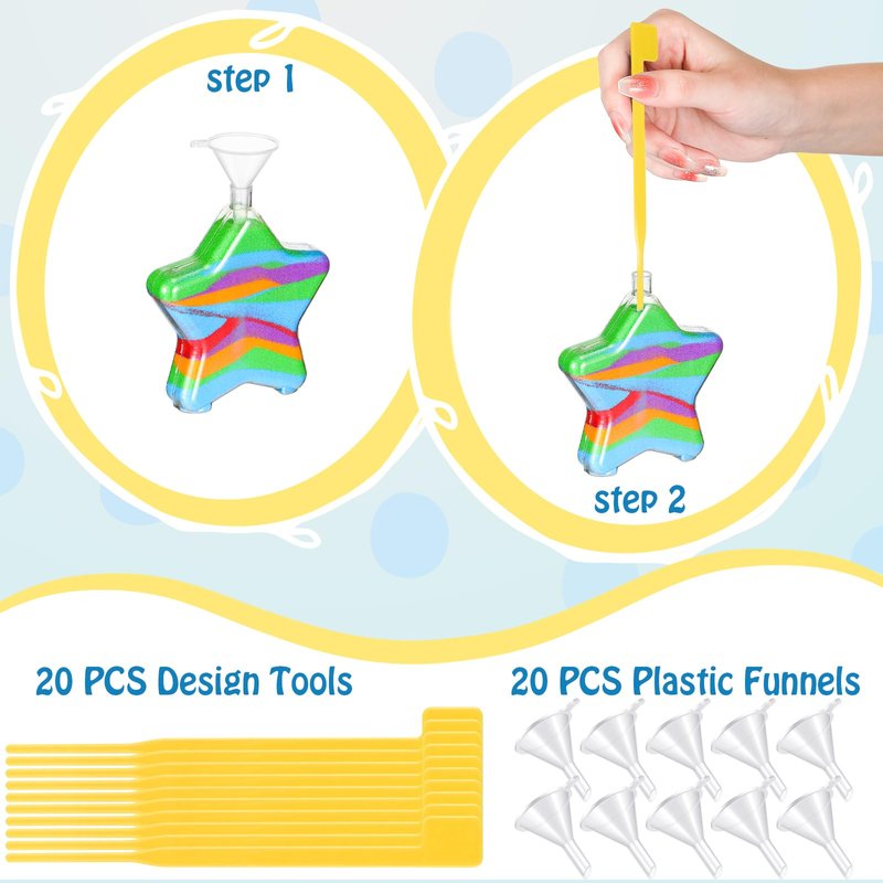 - DIY as You Like: the sand art party kit provides the ideal tools for creating your own designs and patterns; You can use your imagination to create beautiful sand art masterpieces, and you can also make some small gifts for your friend, kid, family