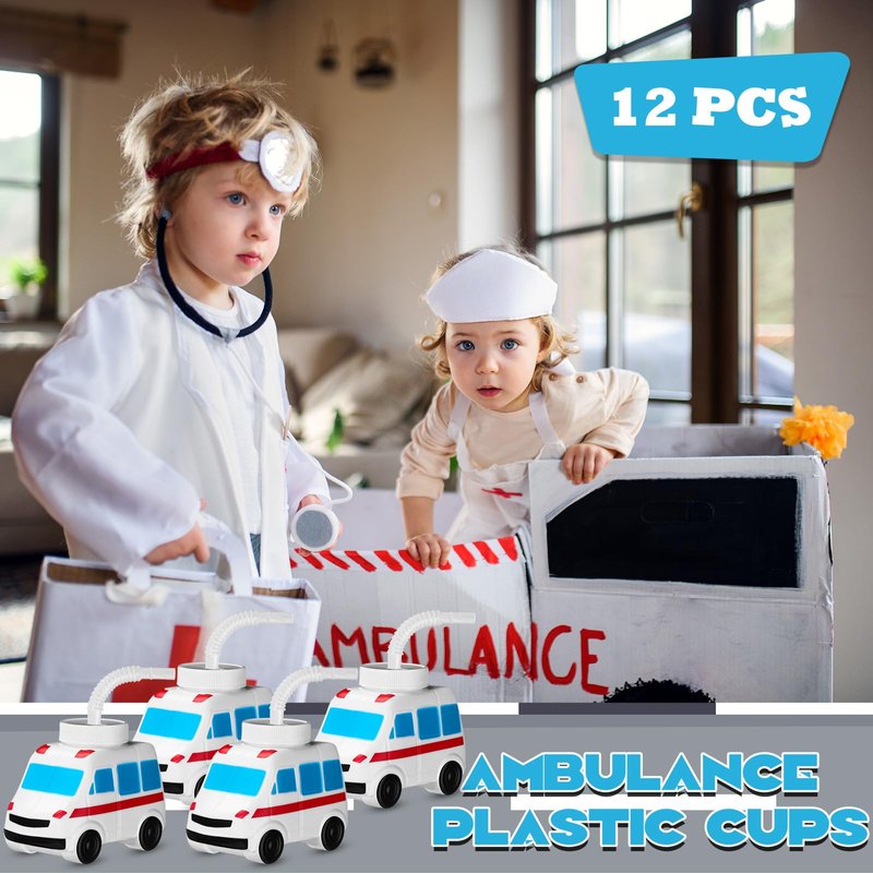 Tanlade Doctor's Party Favor Gift Supplies Ambulance Plastic Cups,Ambulance Shape Cup for Transportation Birthday Party Favor Nurse Graduation Medical Party and Rehabilitation Party Supplies(12 Set)