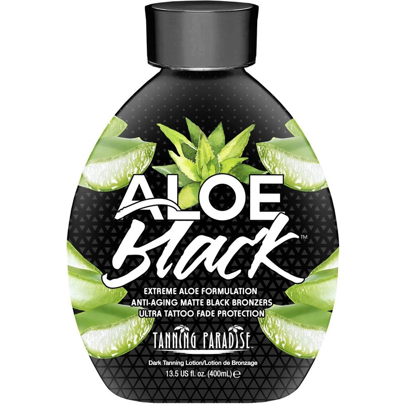 Tanning Paradise Aloe Black Tanning Lotion | Anti-Aging, Anti-Orange, Anti-Wrinkle Matte Black Bronzer Tanning Lotion | Tattoo & Color Fade Protection | Aloe Vera Cashmere Blend Tanning Lotion 13.5 oz