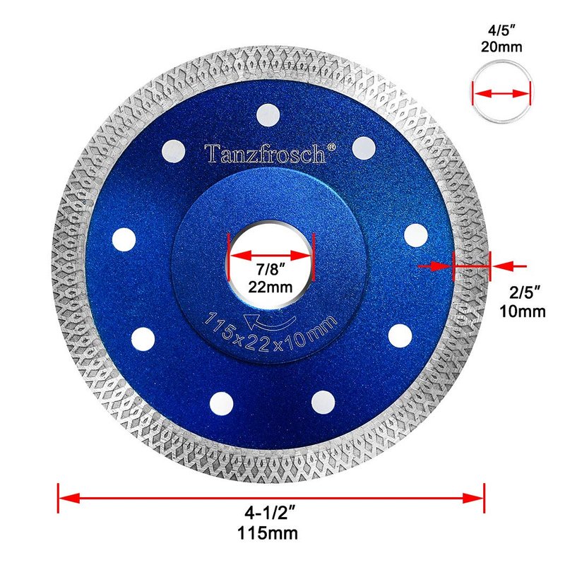 - ★FIT SIZE: Outer Diameter: 115mm (4.5 inch). Thickness: 1.2mm. Suitable for most tile saws and hand-held angle grinders with a 7/8" Arbor.